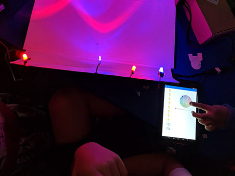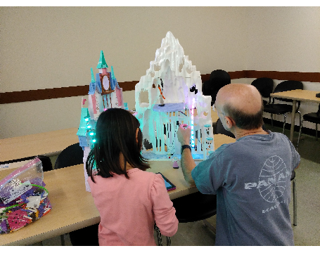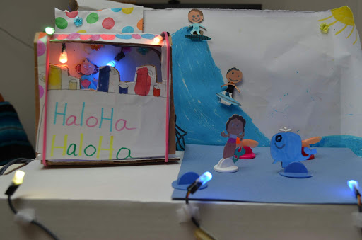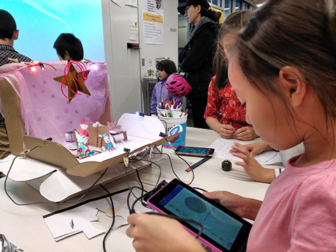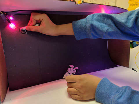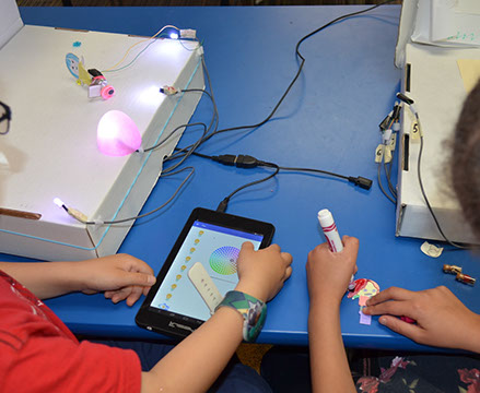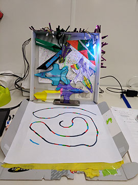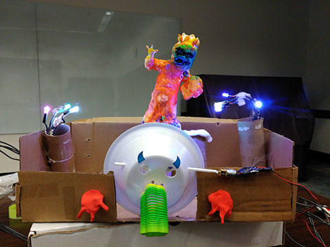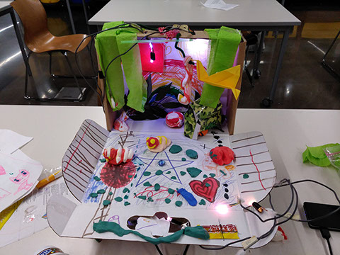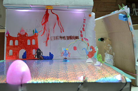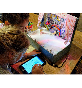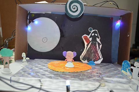 The different components in the interactive stage kit as exhibited at Seattle Mini Maker Faire 2017